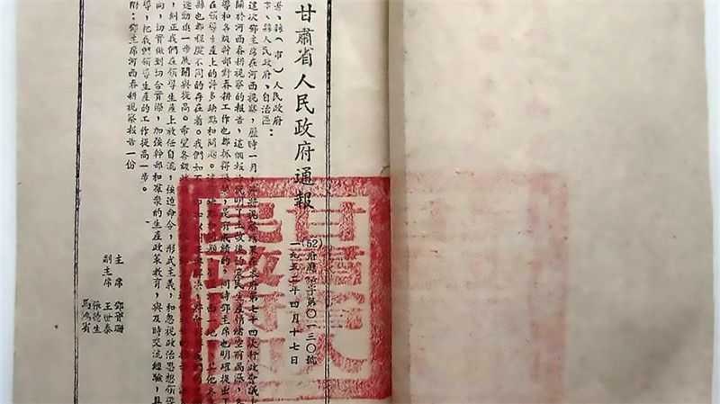 1950年1月8日,鄧寶珊正式就任甘肅省人民政府主席和省長(zhǎng)。他感到責(zé)任重大,也對(duì)甘肅的發(fā)展充滿了希望。他經(jīng)常到下面體察民情,足跡遍布全省的各個(gè)縣。在不能通車的偏遠(yuǎn)地方,就是步行幾小時(shí)也要走到下面的村縣。1952年3月2日,鄧寶珊主席一行從蘭州出發(fā),對(duì)武威和酒泉兩個(gè)專區(qū)展開(kāi)視察,歷時(shí)一個(gè)多月,走訪了永登、古浪、山丹、張掖、敦煌等13個(gè)縣。山丹縣1950年劃歸武威專區(qū),1955年后復(fù)歸張掖專區(qū)。