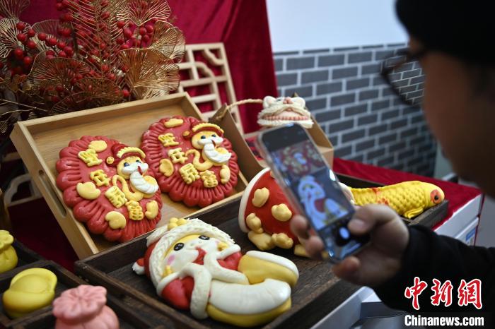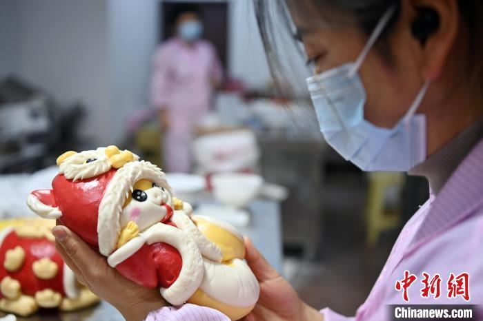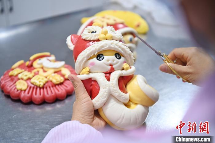 圖為面點師制作的“萌蛇”花饃。中新社記者 九美旦增 攝