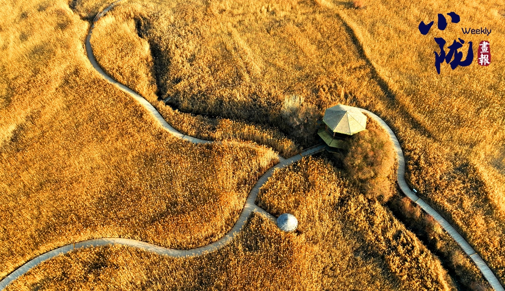 濕地天晴,碧水環(huán)繞,萬(wàn)畝葦蕩一片金黃,仿佛是一幅富有層次感的油畫(huà),令人陶醉。