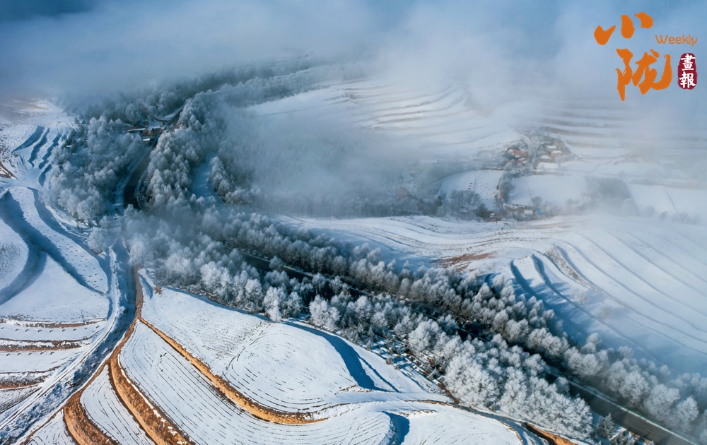 黃河上游最大支流的洮河穿境而過,一路向東奔流。從高空俯瞰,大雪為洮河披上了一層華麗的銀裝,河水靜流,山巒靜止,水墨畫卷自然天成。