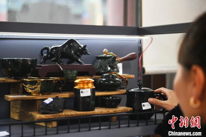 2月8日,甘肅省蘭州市城關(guān)區(qū)“非遺年貨購(gòu)物月”活動(dòng)現(xiàn)場(chǎng),游人選購(gòu)非遺文創(chuàng)產(chǎn)品。 中新社記者 李亞龍 攝