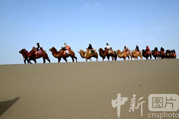 2025年3月2日,游客在甘肅省敦煌市鳴沙山月牙泉景區(qū)游覽。從3月1日開始,至3月31日,甘肅省敦煌市鳴沙山月牙泉景區(qū)、世界文化遺產(chǎn)玉門關(guān)遺址、敦煌雅丹世界地質(zhì)公園三大市屬景區(qū)推出門票半價(jià)優(yōu)惠政策,吸引游客走進(jìn)敦煌,欣賞大漠風(fēng)光,體驗(yàn)絲路風(fēng)情。中新社發(fā) 張曉亮 攝