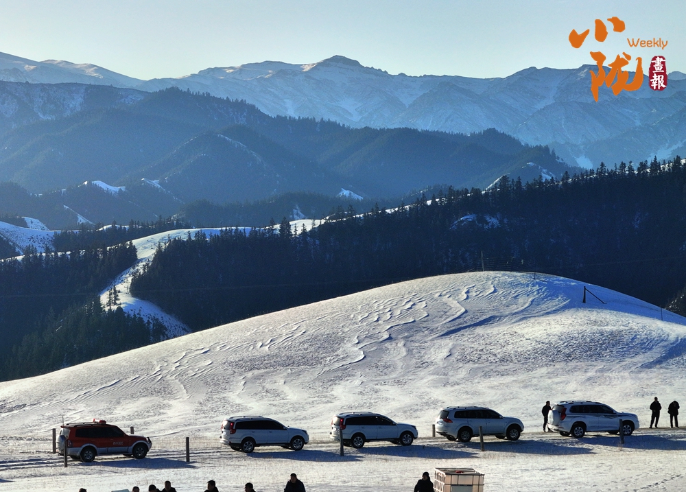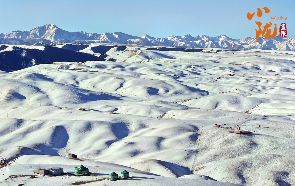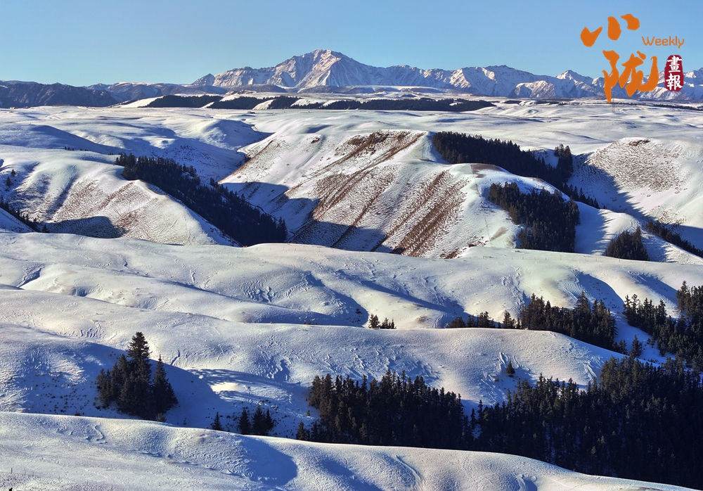 湛藍(lán)的天空下,山巒層層疊疊,銀裝素裹,閃爍著耀眼的光芒。