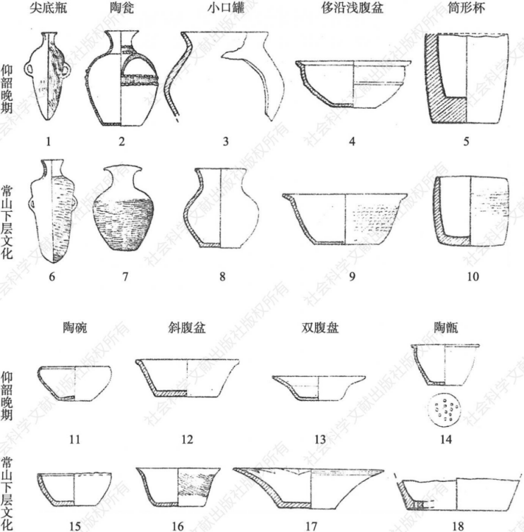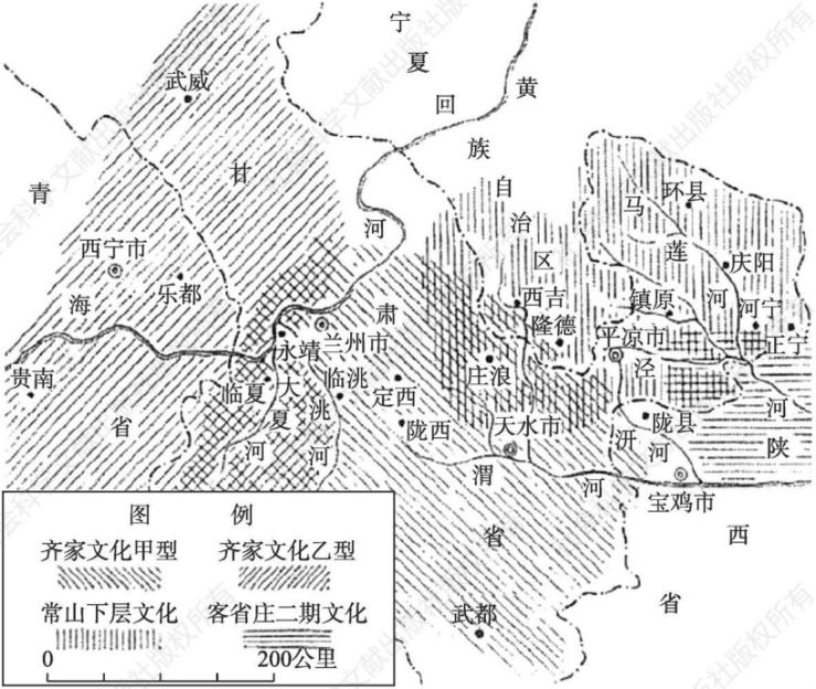 常山下層文化是黃河中上游新石器時代晚期的重要文化遺存,最早發(fā)現(xiàn)于甘肅省鎮(zhèn)原縣常山遺址而得名。胡謙盈先生認為其主要分布在西北黃土高原東部的涇、渭兩河流域上游區(qū)域,其分布范圍東至子午嶺西側,西至鳥鼠山東側的渭源縣,北至寧夏回族自治區(qū)南部,南至陜西省彬縣及甘肅天水地區(qū)南部。學界普遍認為,它是由仰韶文化晚期發(fā)展而來,同時也是齊家文化的重要源頭之一。依據碳14測定,其年代約為公元前2930±180年,相對年代晚于仰韶文化,早于先周文化,是西北新石器時代晚期的文化紐帶,在研究中國史前文化演進中占據重要地位。