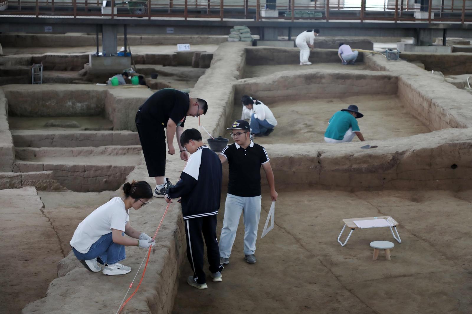 不遠(yuǎn)處,另外幾名學(xué)生也在各自負(fù)責(zé)的探方內(nèi)忙碌著,畫線、找邊、測(cè)量、繪圖,他們用手中的工具,在土層中探尋著慶陽(yáng)文明脈搏的古老印記。