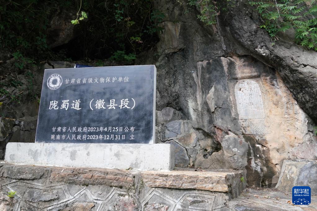 7月14日在甘肅省隴南市徽縣大河店鎮(zhèn)青泥村拍攝的青泥驛石碑。新華社記者 陳斌 攝