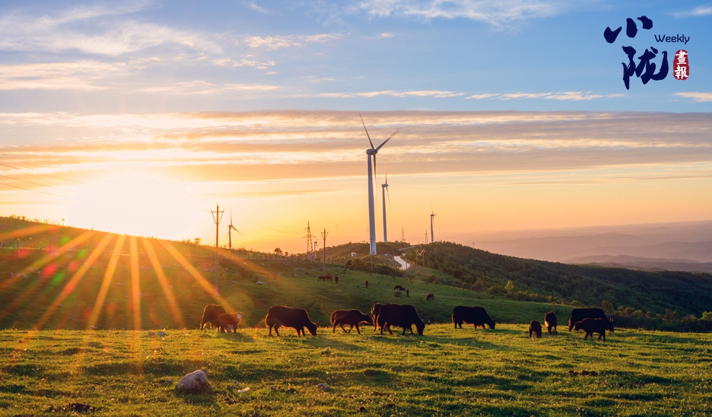 廣闊的牧場,一望無垠。綠油油的牧草覆蓋整片天地,宛如一片綠色的海洋。草原上游走的牛羊,與天空浮云、遠(yuǎn)景的群山、矗立的風(fēng)力發(fā)電機交相輝映,極目遠(yuǎn)望、蔚為壯觀,構(gòu)成關(guān)山古道一道靚麗風(fēng)景線。