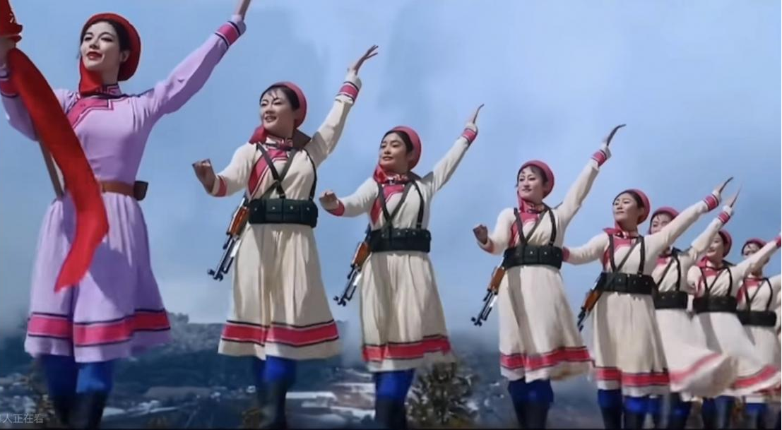 《草原女民兵》在膠片中獲得了永恒,那些蒙古族女民兵在銀幕上揚鞭催馬的英姿,那些與暴風雨搏斗的堅韌身影,那些融合了多民族藝術元素的優(yōu)美動作,之所以能夠穿越近半個世紀依然打動我們,是因為舞蹈沒有將女民兵塑造成無堅不摧的符號,而是展現(xiàn)了她們的多面性:既是戍邊衛(wèi)國的戰(zhàn)士,也是會在風雨中脆弱、在互助中溫暖的少女。這種人文關懷,讓英雄形象變得可感可親,也讓“家國情懷”不再是空洞的口號,而是融入日常巡邏、并肩作戰(zhàn)的具體行動。從云南邊防前線的慰問演出,到唐山大地震的救災現(xiàn)場,文工團的舞者們帶著這支舞蹈走向基層,讓戰(zhàn)士們在炮火與艱苦中感受到精神的力量,而舞蹈也在與觀眾的共鳴中,成為連接藝術與生活、個人與國家的紐帶。
