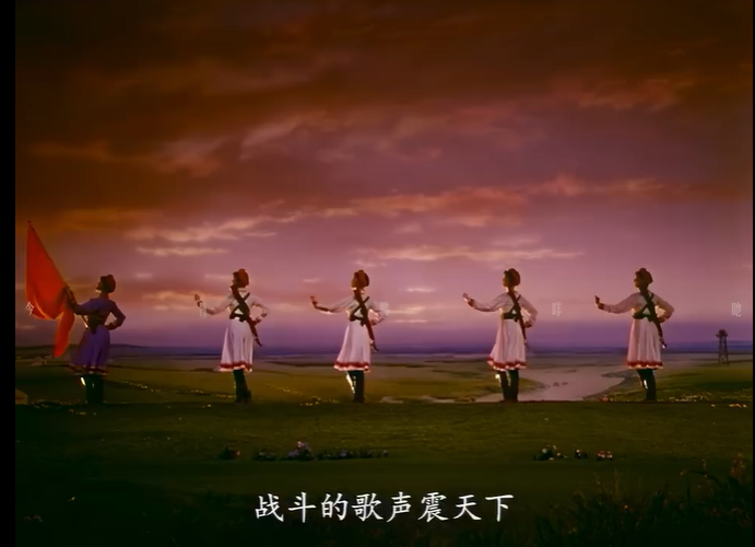 蒙太奇剪輯的節(jié)奏再造則重塑了舞蹈的視覺體驗。舞臺上的舞蹈遵循線性的、不可逆的時間流,而電影通過剪輯,可以打破這種線性束縛,創(chuàng)造全新的節(jié)奏與韻律。在表現(xiàn)女民兵與暴風雨搏斗的段落中,快速的鏡頭切換、不同角度的交替呈現(xiàn)、動作的重復與強化,構建出一種比現(xiàn)場演出更為緊張、更具沖擊力的視覺節(jié)奏。舞蹈中“揚鞭催馬”的豪邁、“戰(zhàn)刀閃亮”的凌厲,通過精心設計的剪輯,被提煉為一系列極具標志性的視覺符號,深深烙印在觀眾的記憶中。