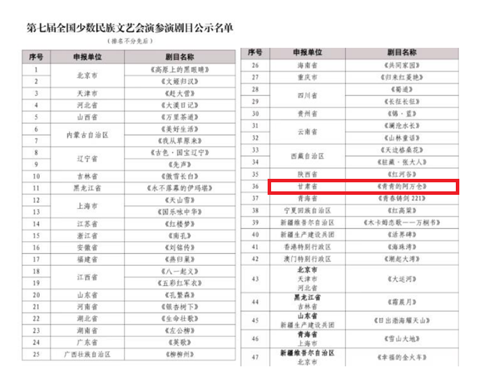 近日,國家民委正式發(fā)布《第七屆全國少數(shù)民族文藝會演參演劇目公示名單》。經(jīng)嚴格遴選與層層審核,由甘肅省委宣傳部、省委統(tǒng)戰(zhàn)部指導(dǎo),省民委、省文旅廳、省文聯(lián)、省衛(wèi)健委、甘肅演藝集團聯(lián)合出品,甘肅省話劇院傾力創(chuàng)排演出的話劇《青青的阿萬倉》成功入圍。
