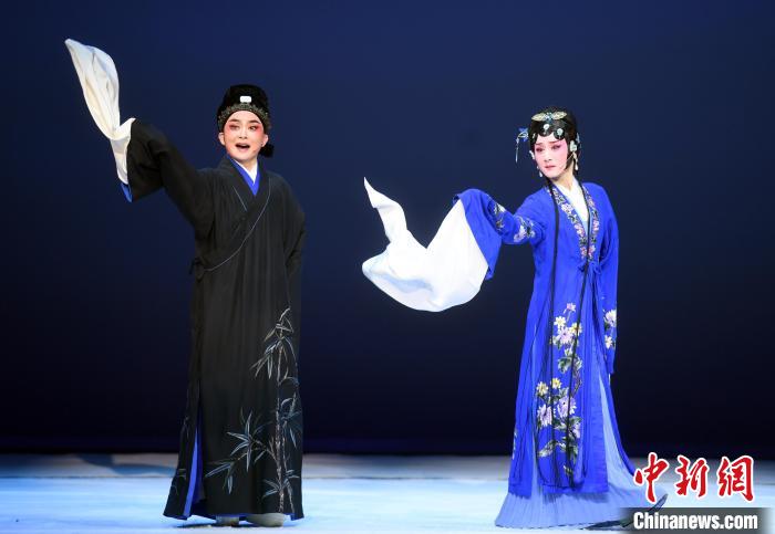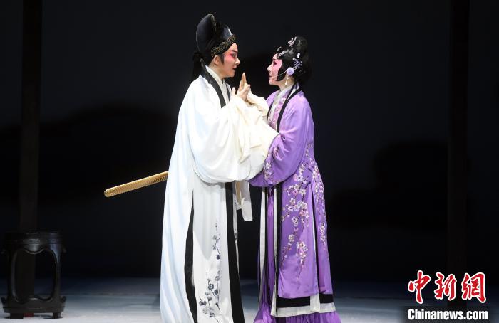 在劇中,唐琬由國家一級演員鄭全(右)飾演,陸游則由中國戲劇梅花獎得主陳麗宇(左)飾演?!∮浾邉⒖筛?nbsp;攝
