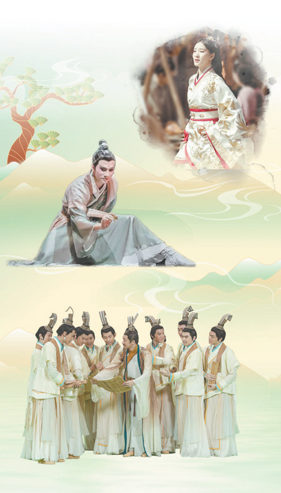 圖片從上至下依次為綜藝節(jié)目《舞千年》劇照、國風(fēng)舞蹈《紙扇書生》《孔子》劇照。 制圖:趙偲汝