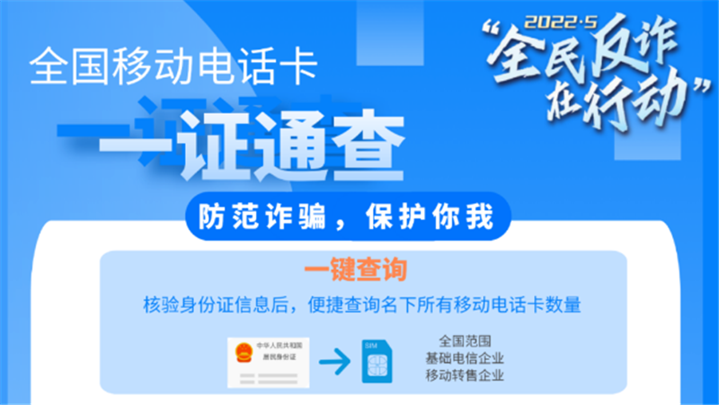 詐騙分子冒用他人身份開辦電話卡嚴(yán)重侵害用戶本人合法權(quán)益,廣大群眾對此深惡痛絕。“一證通查”服務(wù)打通了93家省級基礎(chǔ)電信企業(yè)和39家移動通信轉(zhuǎn)售企業(yè)相關(guān)數(shù)據(jù),群眾只需要使用自己的居民身份證,即可通過線上線下多種渠道查詢本人名下持有的全國移動電話卡數(shù)量,專用短信端口10699000將在48小時(shí)內(nèi)向預(yù)留手機(jī)號反饋結(jié)果,真正實(shí)現(xiàn)了全國移動電話卡的統(tǒng)一便捷查詢。