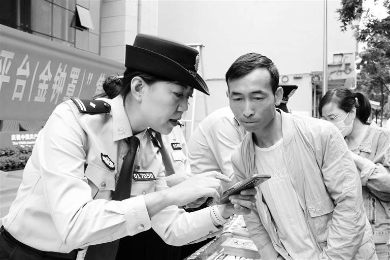民警指導(dǎo)群眾安裝注冊(cè)國(guó)家反詐中心APP(蘭州市公安局城關(guān)分局供圖)