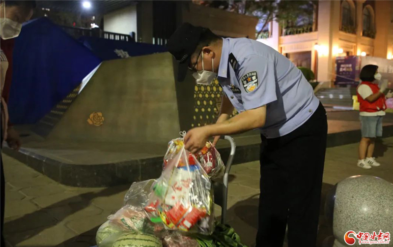 在安寧西路派出所轄區(qū)一處疫情高風(fēng)險小區(qū),李東輝擔(dān)負(fù)起了入口值守和物資轉(zhuǎn)運工作,每天值守至少12小時,實行“白+黑”24小時倒班模式。李東輝對群眾訂購的物資逐一進行核對登記,保證種類數(shù)量齊全,隨后進行消殺,再按照訂單先后順序轉(zhuǎn)運至小區(qū)門口。物資運送時時都有,李東輝總是從白天忙到深夜。