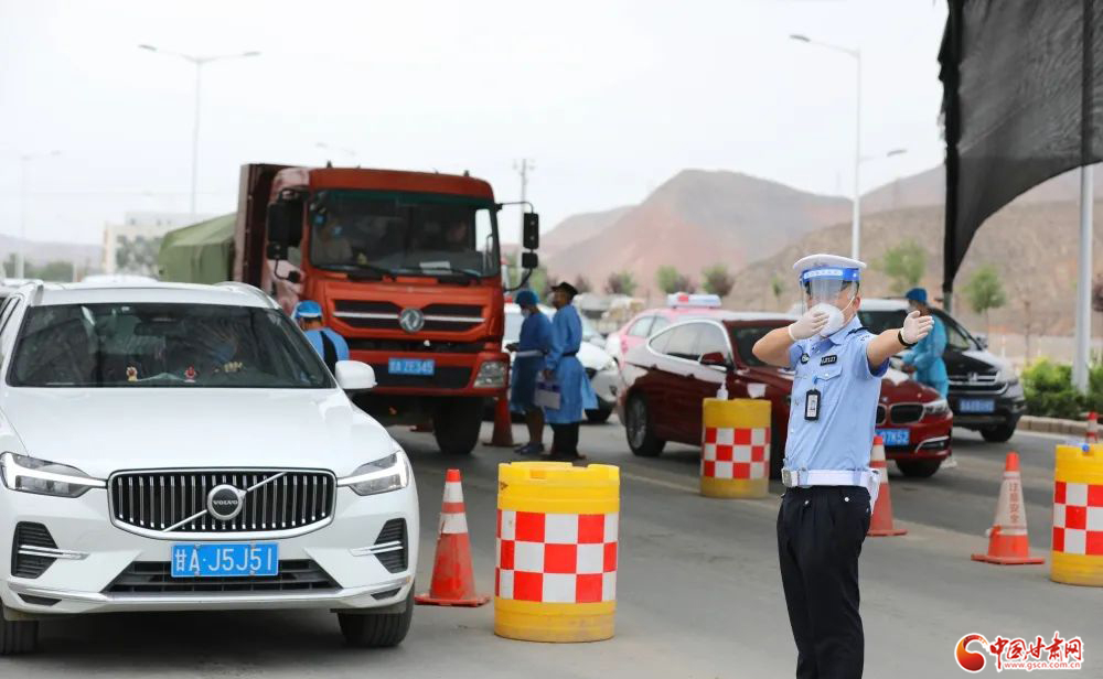 韓家河治安檢查站,執(zhí)勤民輔警協(xié)同配合責(zé)任成員單位工作人員嚴(yán)守蘭州南大門,做好跨地區(qū)出行人員勸導(dǎo),全力筑牢“外防輸入 內(nèi)防輸出”安全屏障。楊 釗/攝