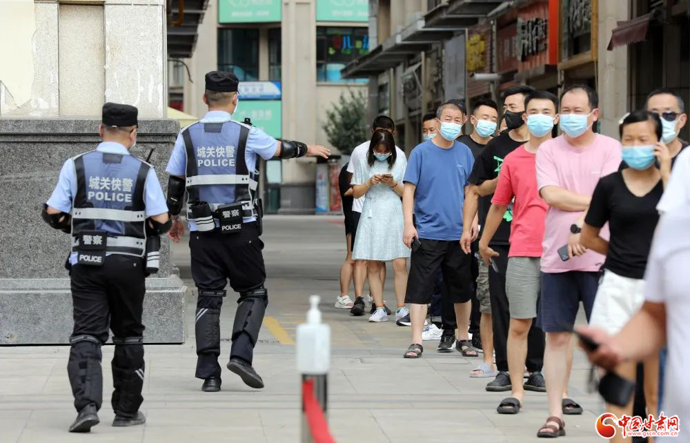 城關(guān)公安快警發(fā)揮機(jī)動(dòng)優(yōu)勢,在轄區(qū)各核酸采集點(diǎn)開展秩序維護(hù)安全守護(hù)等工作。楊 釗/攝