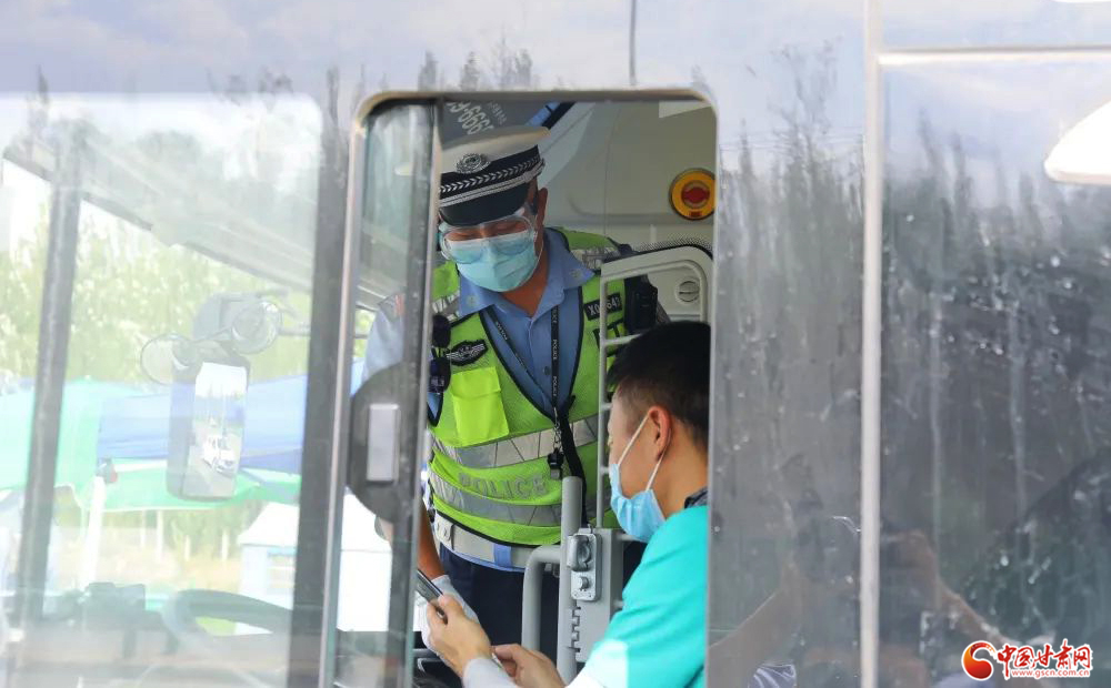 蘭州新區(qū)公安民警正在對公共交通駕駛員進(jìn)行例行檢查。蘭州新區(qū)公安局 王子軒/攝