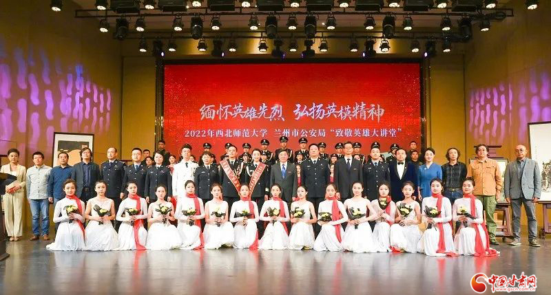 張俊宗表示,英雄先烈是我們民族的脊梁,通過(guò)聆聽(tīng)公安烈士和英模典型的感人事跡,真切地感受到“哪有什么歲月靜好,只不過(guò)有人替你負(fù)重前行”;真切地感受到和平之所以彌足珍貴,是因?yàn)橛腥藶槲覀儓?jiān)守捍衛(wèi)。他強(qiáng)調(diào),愛(ài)國(guó)主義是西北師大的優(yōu)良辦學(xué)傳統(tǒng)、教育底色和紅色基因。與蘭州公安攜手開(kāi)展“緬懷英雄先烈 弘揚(yáng)英模精神”活動(dòng),目的就是在全校上下?tīng)I(yíng)造“學(xué)習(xí)英雄、崇尚英雄,愛(ài)黨愛(ài)國(guó)、追求崇高”的濃厚氛圍,把愛(ài)國(guó)主義精神、英雄主義精神深植于校園的每個(gè)角落,賡續(xù)紅色基因,勇?lián)鷱?qiáng)國(guó)使命。