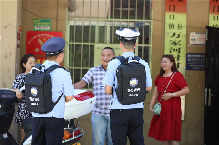 2021年6月,康縣公安局總結(jié)了豆壩派出所“背包警務(wù)”好的做法和典型經(jīng)驗(yàn),向全縣18個(gè)派出所全面推廣“背包警務(wù)”。一次性為全縣67名社區(qū)民警統(tǒng)一購置了警務(wù)背包,并增添了服務(wù)項(xiàng)目,進(jìn)一步擴(kuò)充完善“背包警務(wù)”內(nèi)容。