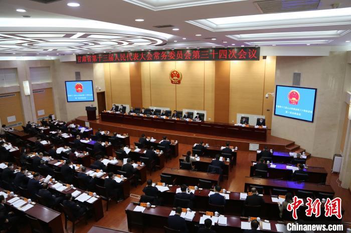 11月22至25日,甘肅省第十三屆人大常委會(huì)第三十四次會(huì)議在蘭州召開(kāi)。圖為會(huì)議開(kāi)幕式現(xiàn)場(chǎng)?!■亩盼蹶俊z