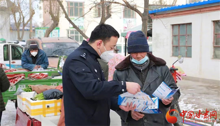 12月17日,玉門市公安局民輔警走上街頭,向群眾開展反電詐宣傳。
