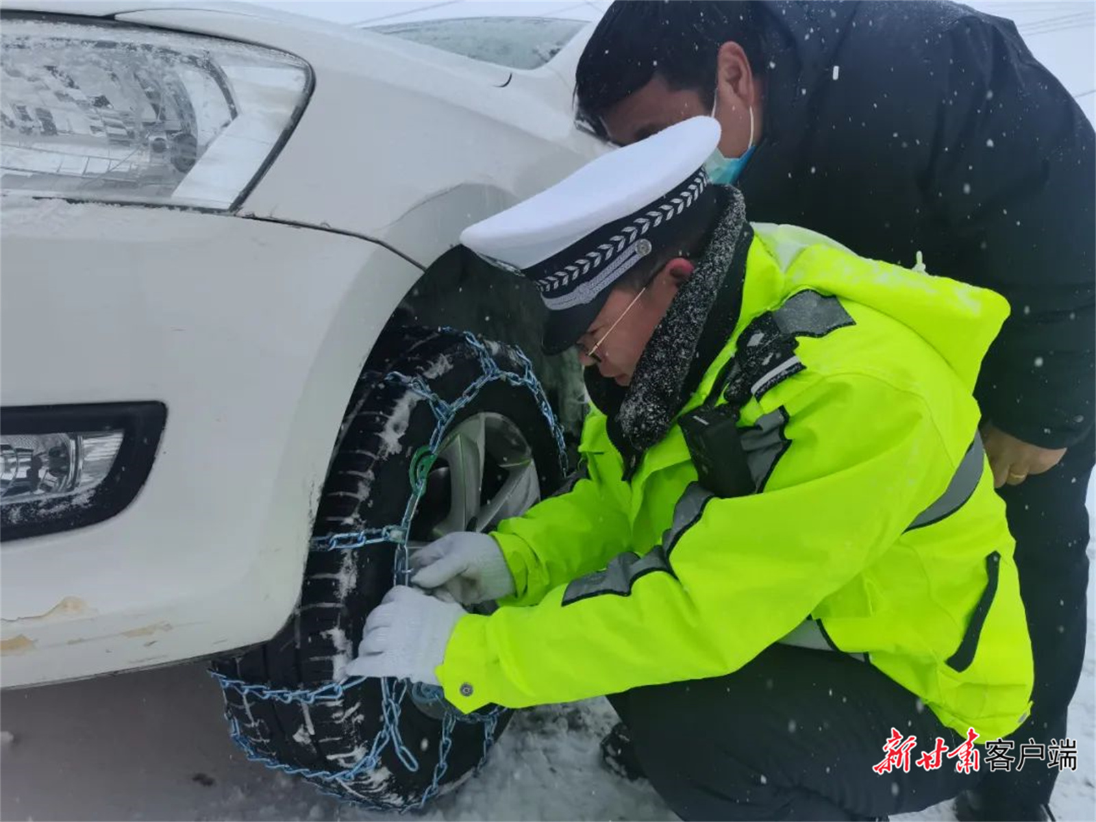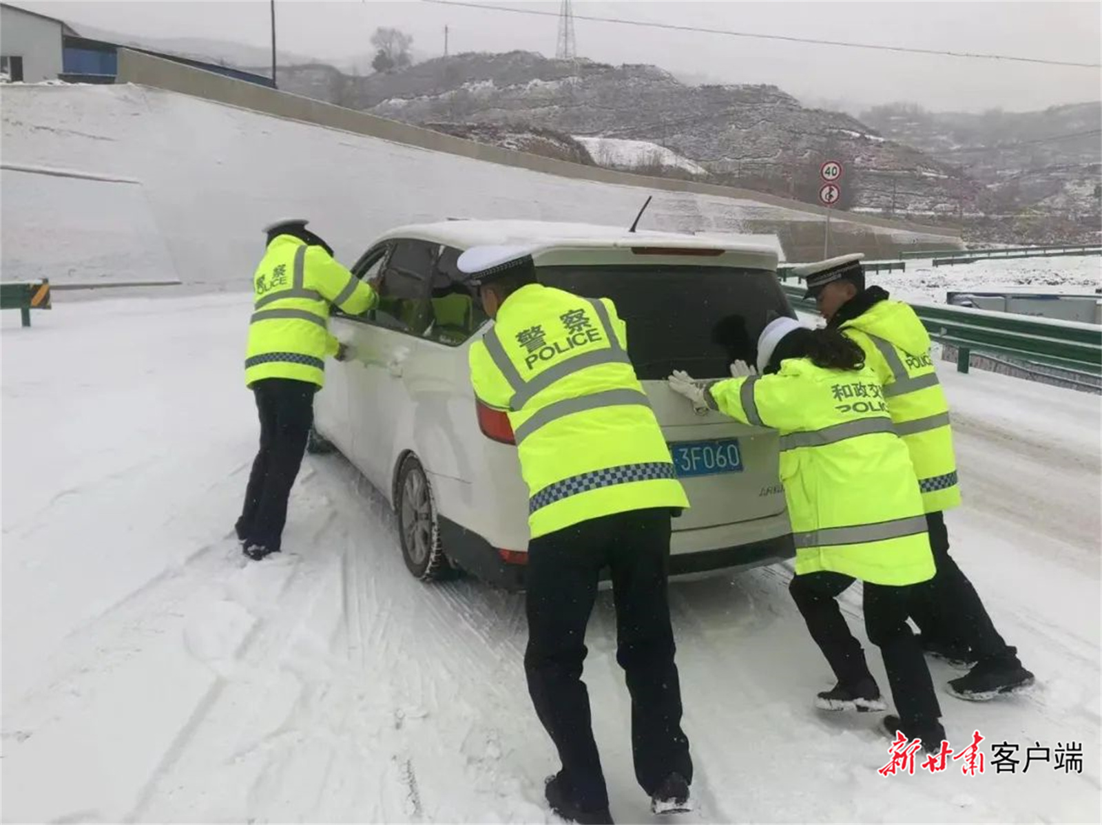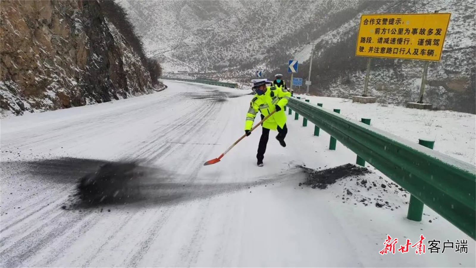 新甘肅客戶端訊(新甘肅·每日甘肅網(wǎng)記者 萬及敏)2月8日上午,甘肅多地出現(xiàn)降雪天氣,部分道路出現(xiàn)積雪結(jié)冰現(xiàn)象。為最大限度保障群眾出行安全,預防和減少道路交通事故的發(fā)生,全省公安機關(guān)1.2萬公安民輔警奮戰(zhàn)一線,加大重點路段巡邏管控力度,采取預警提示、除冰、引導車輛減速慢行、封閉道路、幫助群眾推車等措施,嚴防交通事故發(fā)生,為群眾的平安出行保駕護航。