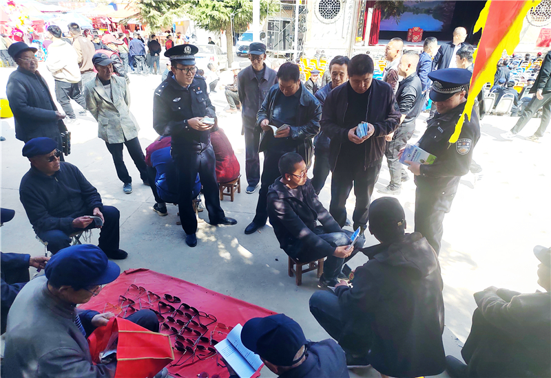 據(jù)悉,開春以來,甘谷縣鄉(xiāng)村群眾活動多種多樣,各基層派出所民警也隨著群眾活動的開展“忙”了起來,結(jié)合“三抓三促”行動工作,深入群眾中間,利用鄉(xiāng)村廟會、鄉(xiāng)鎮(zhèn)集會、游園賞花等人流量較多的有利時機,積極開展宣傳活動。