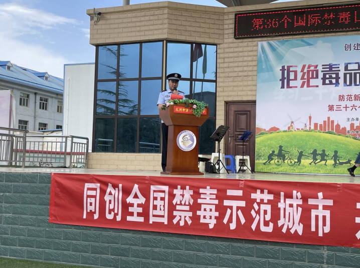 活動(dòng)以化工街派出所教導(dǎo)張華鵬向廣大師生、參與活動(dòng)人員領(lǐng)誓拉開(kāi)帷幕,宣言鏗鏘有力,承諾擲地有聲,一句句誓言,道出了大家對(duì)拒絕毒品、遠(yuǎn)離毒品的決心。西柳溝街道黨工委副書記袁得琴講話中對(duì)全體到場(chǎng)人員作出倡議,希望大家從自身做起積極加入到全社會(huì)禁毒宣傳志愿者隊(duì)伍中,營(yíng)造“禁毒斗陣、人人參與”的良好社會(huì)氛圍。