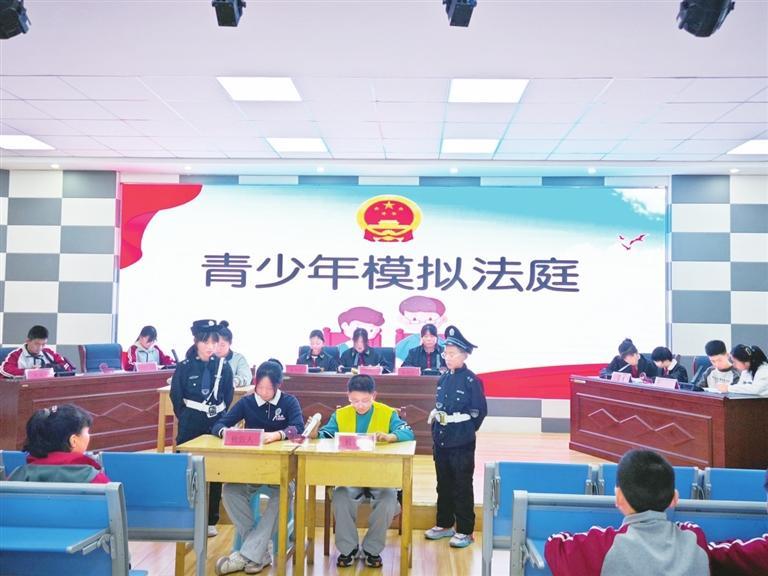 首先,在李青源律師的悉心指導(dǎo)和同學(xué)們的踴躍參與下,經(jīng)過前期的認(rèn)真彩排,同學(xué)們以模擬法庭的形式現(xiàn)場模擬了一起因校園欺凌導(dǎo)致的刑事訴訟案件。參與庭審活動的學(xué)生們沉浸式、體驗(yàn)式、互動式參與其中,有序扮演著審判長、公訴人、辯護(hù)人等角色?;顒右沧屧趫龅钠渌瑢W(xué)認(rèn)識學(xué)習(xí)了法庭審判的全過程,身臨其境感受了校園欺凌會產(chǎn)生的嚴(yán)重后果,以及法律的威嚴(yán),引導(dǎo)青少年學(xué)會用法律保護(hù)自己。