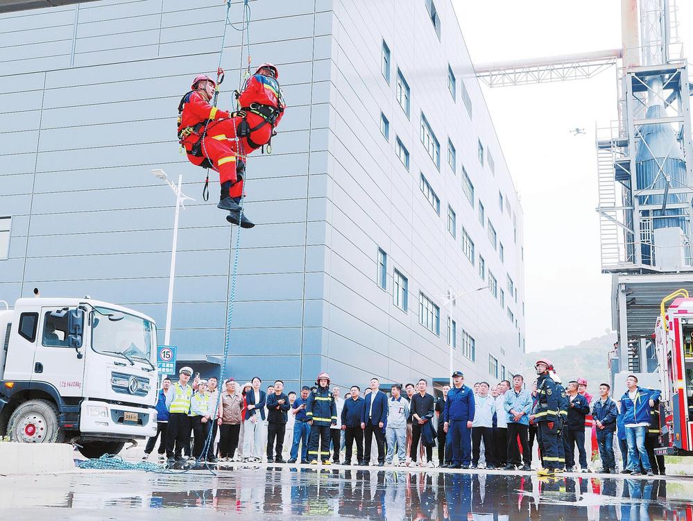 天水經(jīng)濟(jì)技術(shù)開發(fā)區(qū)“5·12”消防實(shí)戰(zhàn)演練現(xiàn)場(chǎng)。新甘肅·甘肅法治報(bào)通訊員王琦攝