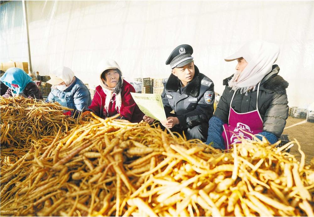 民警向企業(yè)員工宣傳防騙知識。連日來,山丹縣公安局霍城派出所組織民輔警走進(jìn)轄區(qū)企業(yè),開展集中大走訪、隱患大排查、安全大宣教等活動。新甘肅·甘肅法治報通訊員 尚婧 攝