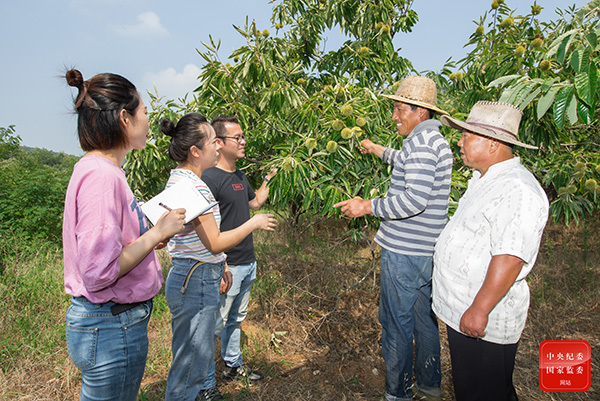 安徽省各級(jí)紀(jì)檢監(jiān)察機(jī)關(guān)緊緊圍繞決戰(zhàn)脫貧攻堅(jiān)做深做實(shí)監(jiān)督工作,加大群眾身邊腐敗和作風(fēng)問題治理力度。圖為淮南市八公山區(qū)紀(jì)檢監(jiān)察干部深入板栗園區(qū),向種植戶了解惠民政策落實(shí)情況。倪慧 攝