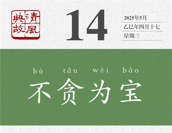 《幼學(xué)瓊林·珍寶》:“從吾所好,豈曰富而可求;有命存焉,當(dāng)以不貪為寶。”“寶”有物質(zhì)層面的,也有精神層面的。有些人為了追求物質(zhì)財富,而置道德操守甚至嚴(yán)刑峻法于不顧;不要說別人主動之“獻(xiàn)”,甚至還會采取各種手段去“索”。有些人為了自己的尊嚴(yán)和操守,則會視來意不明、來路不清之財寶為“糞土”,他們寧愿一生清貧,也不會在金銀財寶面前心理失衡,不會在誘惑面前人格失守。