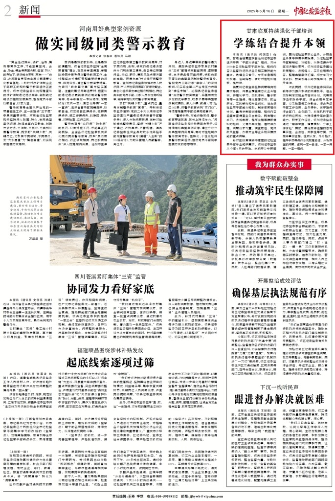 - 2025-06-06中國紀檢監(jiān)察報:蘭州持續(xù)提升干部實戰(zhàn)本領(lǐng) 學用結(jié)合促履職