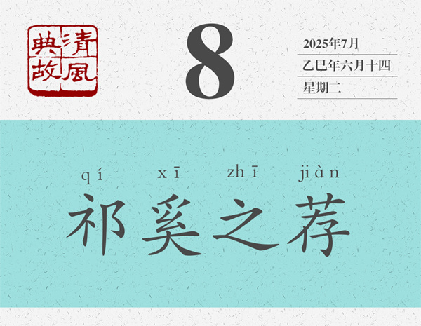 左丘明認(rèn)為,祁奚才是真正能舉薦賢能的人:“稱其仇,不為諂;立其子,不為比;舉其偏,不為黨。”意思是,祁奚推舉他的仇人,不是為了諂媚;推薦自己的兒子,不是出于偏愛;推薦自己的下屬,不是為了結(jié)黨營(yíng)私?!秴问洗呵铩贩Q:“外舉不避仇,內(nèi)舉不避子,祁黃羊可謂公矣。”后世即以“祁奚之薦”為典,形容舉薦人才心胸開闊,公正無私。唐人姚元崇《答張九齡書》:“歷官三朝,年逾一紀(jì),凡所稱薦,罕避嫌疑,實(shí)有祁奚之舉。”