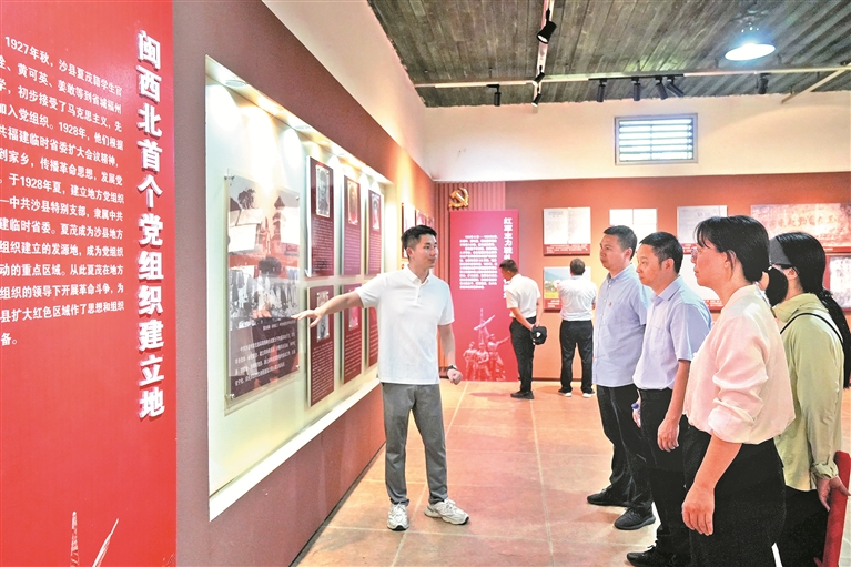 近年來,福建省泰寧縣紀委監(jiān)委運用紅色資源,通過參觀學習紅色場館、開展紅色故事宣講等方式,引導(dǎo)紀檢監(jiān)察干部賡續(xù)紅色血脈,傳承光榮傳統(tǒng)和優(yōu)良作風。圖為近日,該縣紀檢監(jiān)察干部到三明市沙縣區(qū)夏茂鎮(zhèn)紅色展廳開展學習。許林煒 攝