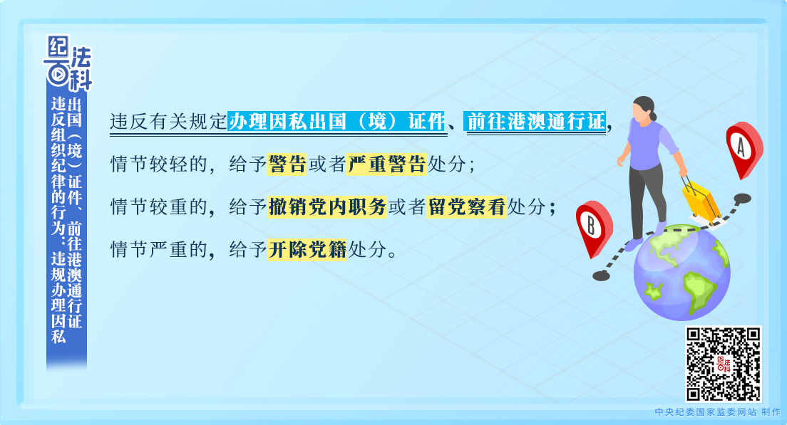 違反組織紀律的行為:違規(guī)辦理因私出國(境)證件、前往港澳通行證