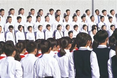 “白山黑水齊出動,復(fù)興我中華……”殘歷碑廣場上,80名青年學(xué)生鏗鏘有力的朗誦聲,讓《送戰(zhàn)友編歌壯行保國家》《黑水白山•調(diào)寄滿江紅》《濱江抒懷》三首分別由東北抗聯(lián)英雄楊靖宇、趙尚志、趙一曼當年寫下的詩詞響徹在沈陽“九•一八”歷史博物館上空。