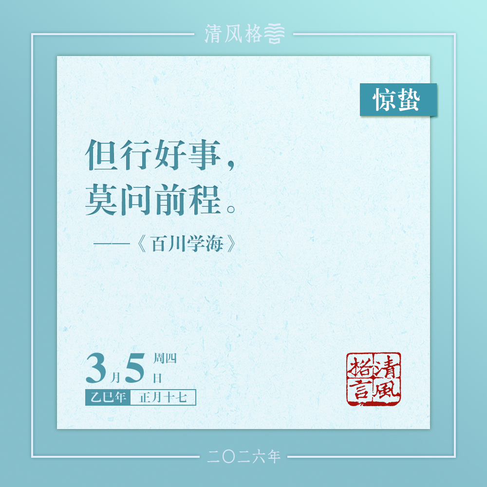 這兩句話可能也非馮道原創(chuàng),很多文獻(xiàn)都記載為“但行好事,莫問前程”的諺語。如《昨非庵日纂》援引宋代名臣趙抃的話說,有的人“說得一尺,行得一寸”,即我們常說的“語言的巨人,行動(dòng)的矮子”,還有的人“任他極有見識(shí)”“隨你極有聰明”,可一較真便會(huì)露餡,畢竟投機(jī)取巧的偽善,置于實(shí)實(shí)在在的真善之下都不堪一擊。趙抃以為,一心奉行“好事”的人,一定是認(rèn)真踏實(shí)、埋頭做事,甚至?xí)燥@“拙”態(tài)的人,因?yàn)檫@樣的人,往往樸實(shí)無華,心地?zé)o私。