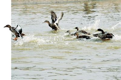 野鴨戲水。梁劍 攝