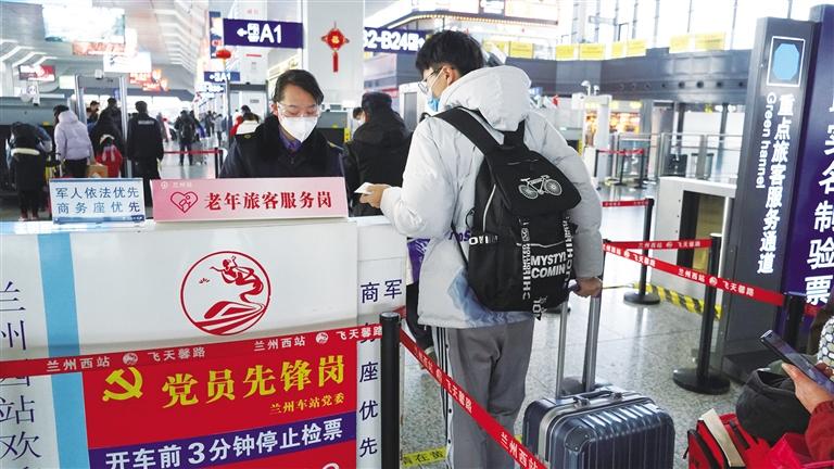 中國(guó)甘肅網(wǎng)1月19日訊 據(jù)蘭州日?qǐng)?bào)報(bào)道記者 何怡璇 通訊員 劉松強(qiáng) 王燕強(qiáng) 文/圖)為做好2022年春運(yùn)工作,實(shí)現(xiàn)“平安春運(yùn)、有序春運(yùn)、溫馨春運(yùn),讓旅客體驗(yàn)更美好”工作目標(biāo),蘭州西站黨總支聯(lián)合七里河區(qū)團(tuán)委、蘭州車站關(guān)工委、甘肅疫情救援隊(duì)聯(lián)合開展“筑牢疫情防控線,情暖南來北往客”主題黨日活動(dòng),豐富關(guān)愛服務(wù)舉措,讓旅客在春運(yùn)中有更多獲得感,充分發(fā)揮黨組織戰(zhàn)斗堡壘和黨員先鋒模范作用。