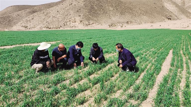 近日,記者在白崖、豐水村看到,農(nóng)業(yè)技術(shù)人員正實(shí)地查看胡麻、玉米等新品種示范區(qū)種植田塊,并向農(nóng)戶了解生產(chǎn)與管理情況,現(xiàn)場指導(dǎo)田地管理。