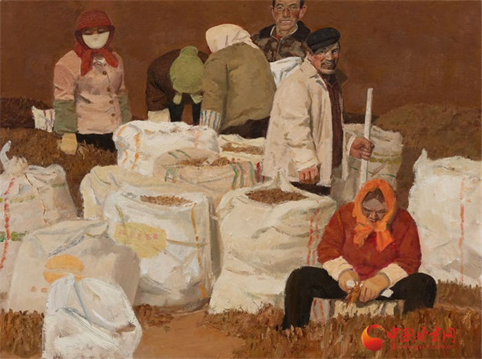 由蘭州畫院張光宏創(chuàng)作的油畫《收獲之二》