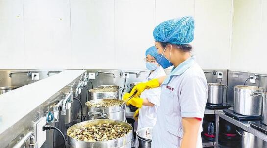 盛夏時(shí)節(jié)暑熱難耐,佛慈養(yǎng)生堂煎藥中心的室內(nèi)溫度更是高達(dá)43攝氏度。浸泡、熬制、清湯、打包……煎藥師們一絲不茍,嚴(yán)格按照要求完成每一道工序。