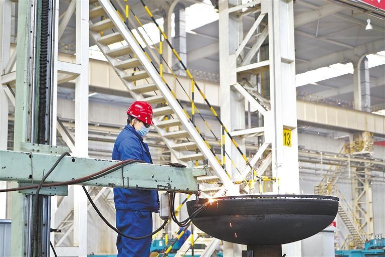 蘭石重裝煉化公司裝焊一車(chē)間生產(chǎn)繁忙。新甘肅·甘肅日?qǐng)?bào)記者 王占東