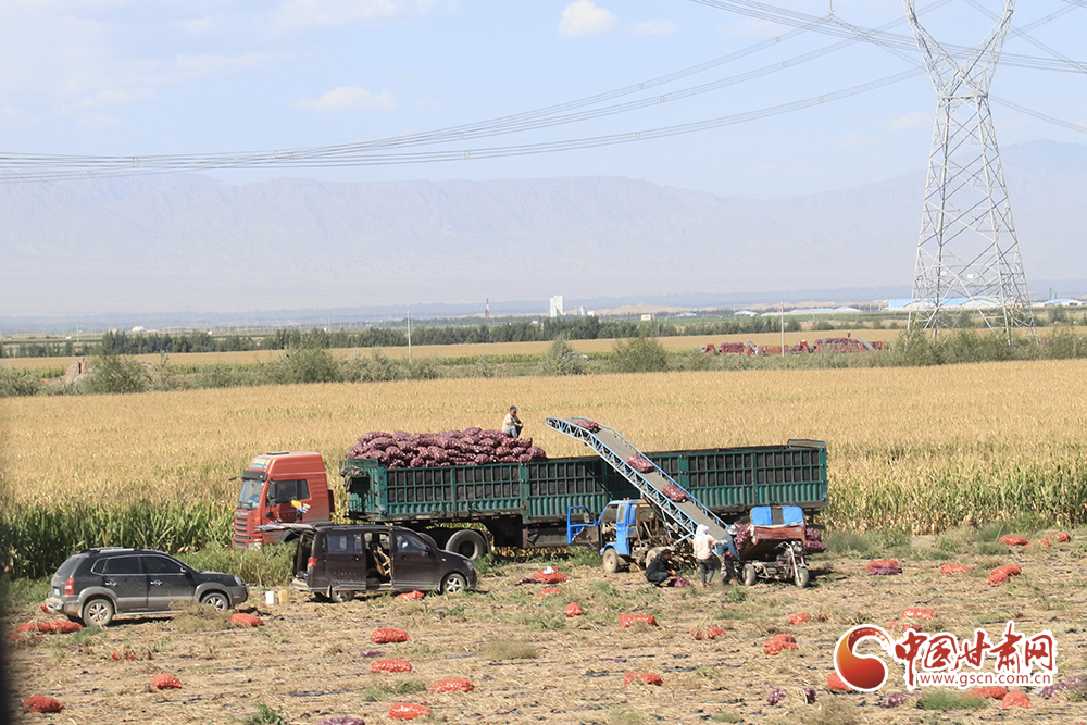 腳下有稻田,耳邊有水聲。帶著泥土的洋蔥整跺碼放,依次裝進(jìn)卡車?yán)?,鮮綠的高原夏菜在田間地頭收割后送進(jìn)發(fā)往南方的冷柜,百畝靑儲(chǔ)玉米經(jīng)過壓縮打包等待進(jìn)入牧場(chǎng)糧倉(cāng)……祁連山下秋收正在火熱進(jìn)行中。