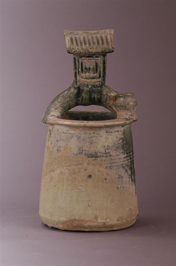 其中,綠釉陶井高26.2厘米,口9.4厘米,底12.5厘米,為蘭州市博物館館藏三級(jí)文物。兩漢時(shí)期陶井作為漢代模型明器的重要組成部分,普遍見(jiàn)于兩漢時(shí)期的墓葬中。漢代推崇儒家思想,以“孝”治國(guó),提倡厚葬,“事死如事生”的喪葬觀念,導(dǎo)致在兩漢墓葬中多隨葬陶井模型明器,是模仿現(xiàn)實(shí)中的水井設(shè)施,將之做成模型埋入墓中供逝者享用。漢代,水井設(shè)施被廣泛地使用,考古發(fā)現(xiàn)的漢代居住、農(nóng)業(yè)及手工業(yè)遺址中出土有大量的水井遺跡。