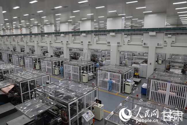 甘肅海亮新能源材料有限公司的生產(chǎn)車間內(nèi),工人們正在生產(chǎn)線上忙碌。人民網(wǎng)記者 黃帆攝