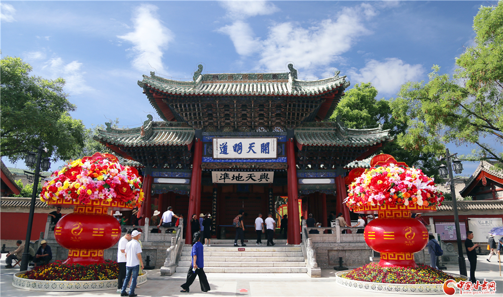 樂舞畢,參加大典的領(lǐng)導(dǎo)和嘉賓們緩緩步入伏羲廟,敬獻花籃,行鞠躬禮,瞻仰伏羲圣像。